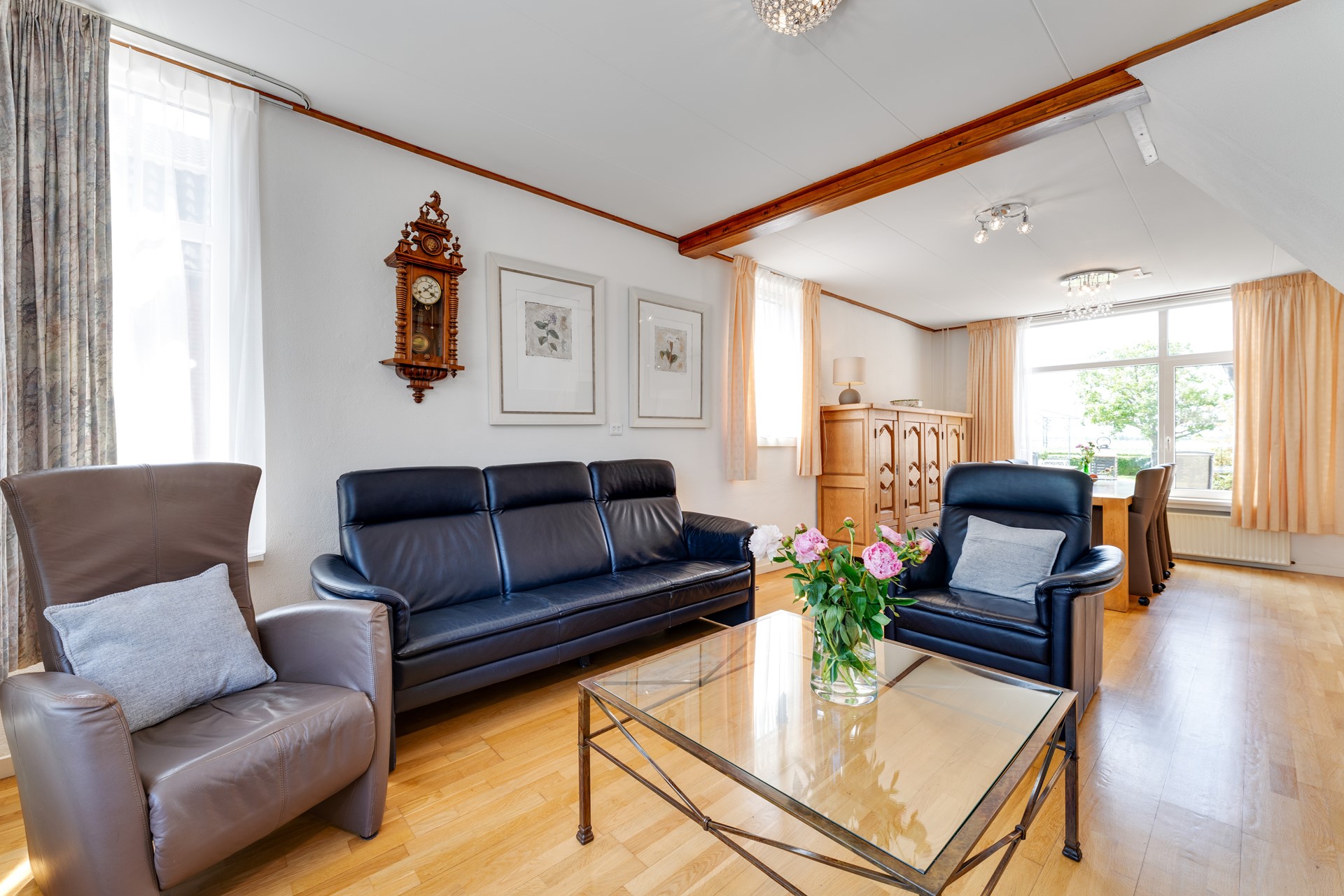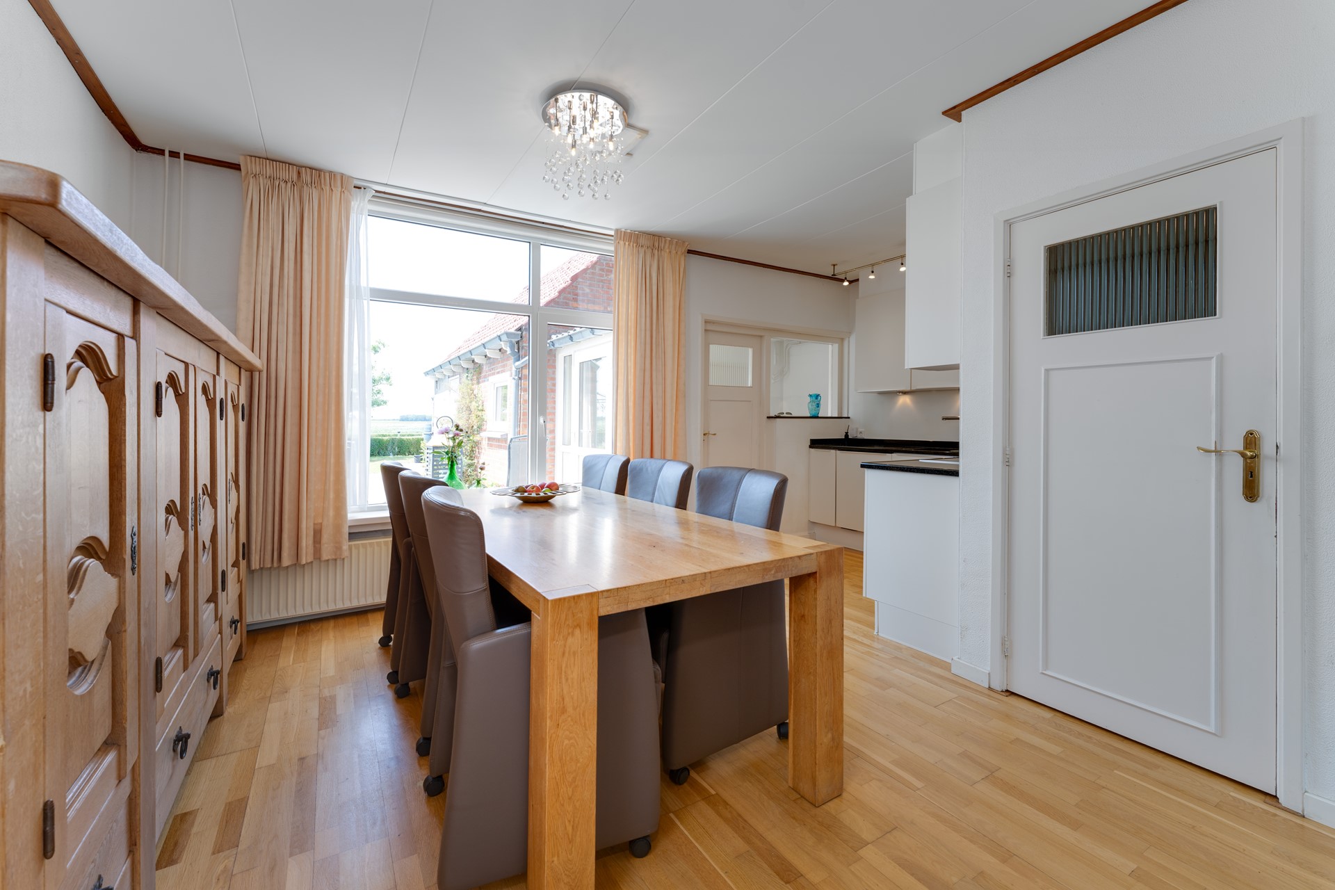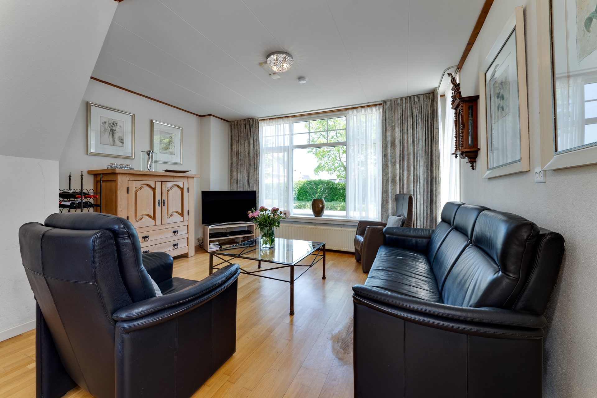 De woonkamer staat in open verbinding met de keuken, die functioneel is ingericht en voorzien van diverse inbouwapparatuur. Met veel werk- en kastruimte én zicht op de tuin is dit een prettige plek om te koken en te leven.