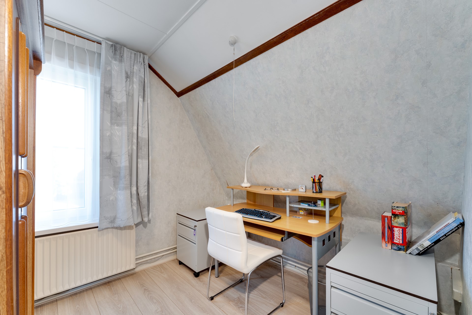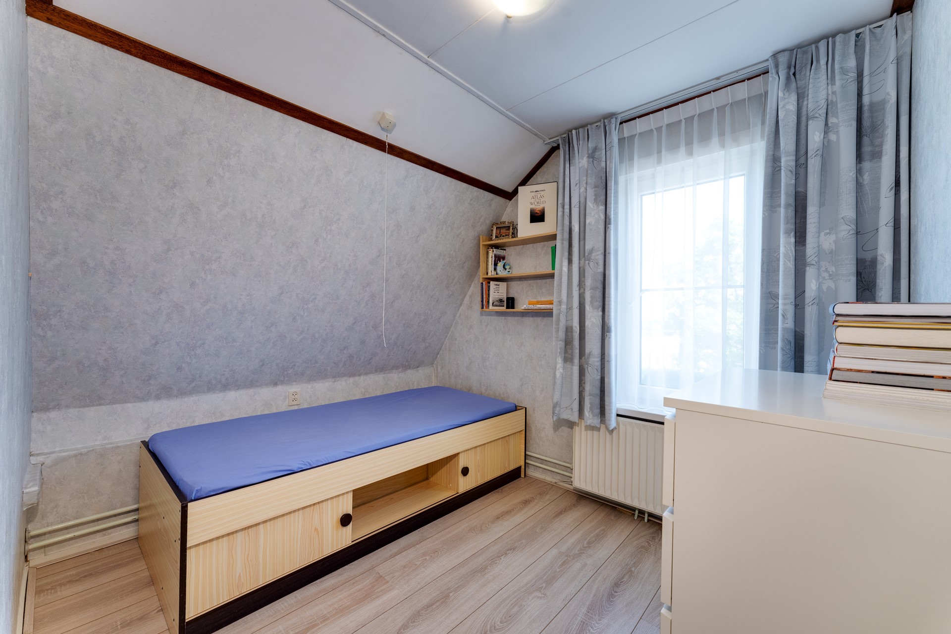 Op de eerste verdieping bevinden zich drie slaapkamers en een aparte wasruimte. De grootste slaapkamer beslaat de volle breedte van het huis en biedt uitzicht op de tuin. De twee andere kamers zijn perfect als kinder-, werk- of logeerkamer. De wasruimte is ruim opgezet en beschikt over extra bergruimte dankzij de aangrenzende kast.