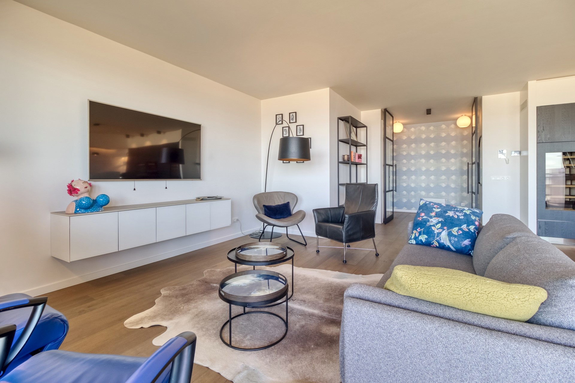 De lichte woonkamer trekt meteen de aandacht dankzij het fenomenale uitzicht over duinen, strand, zee en jachthaven. De stijlvolle, open keuken in U-opstelling is uitgerust met luxe Miele-apparatuur, waaronder een Quooker, wijnklimaatkast, 4-pits inductiekookplaat, afzuigkap, vaatwasser, stoomoven, combimagnetron, spoelbak en koel-vriescombinatie.