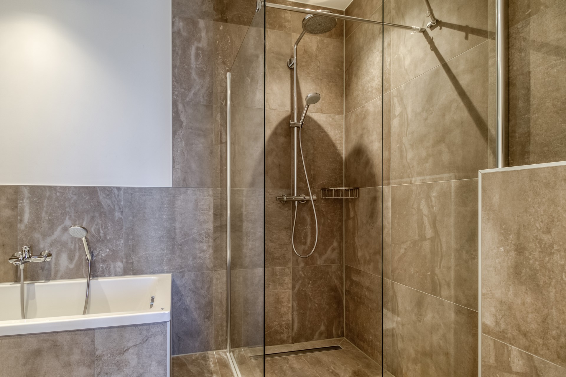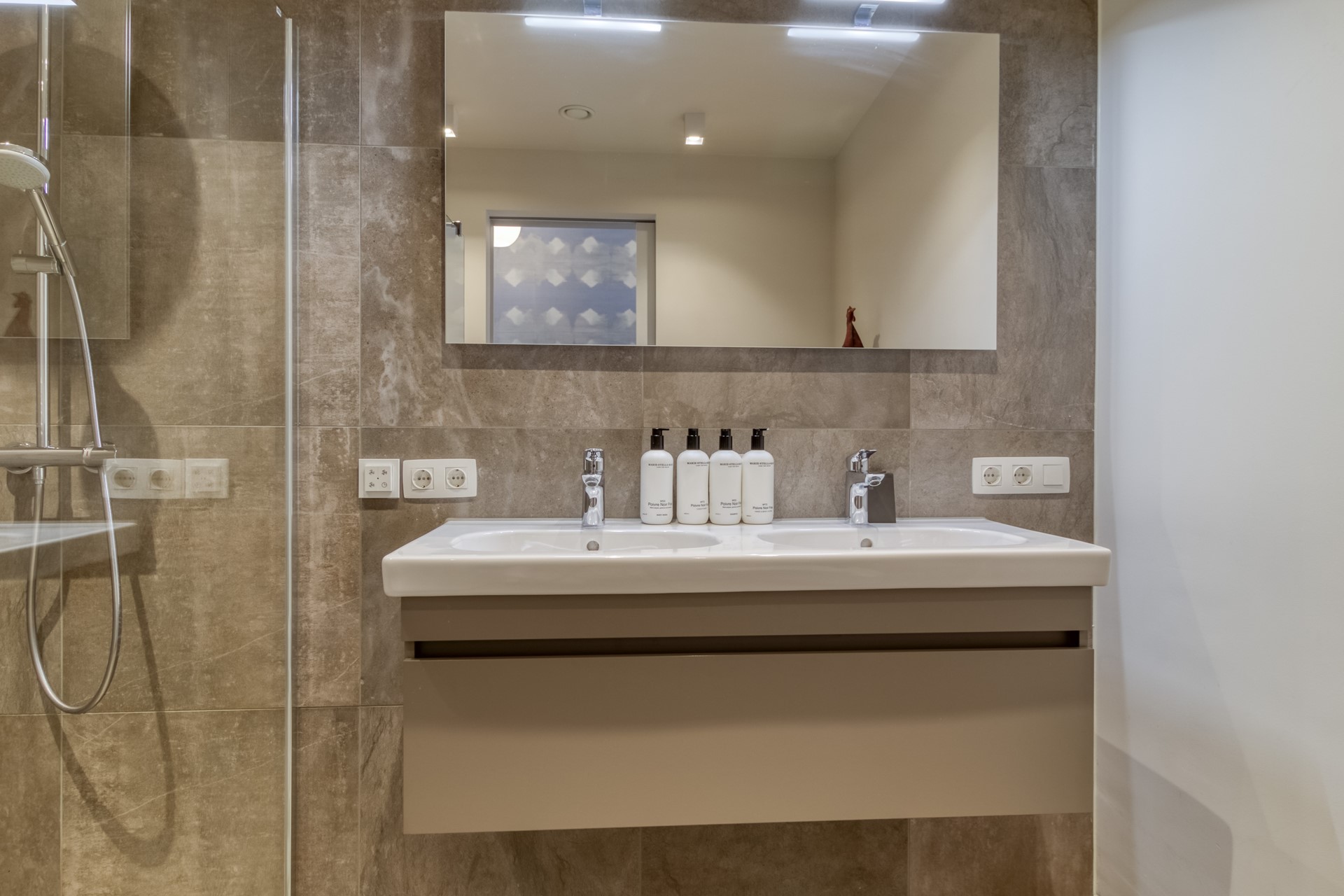 Het appartement telt 3 slaapkamers. De master bedroom beschikt over een luxe badkamer en suite met dubbele wastafel, ligbad, inloopdouche en toilet. Zowel de master bedroom als de aangrenzende slaapkamer geven toegang tot het tweede balkon op het zuiden. De tweede badkamer is voorzien van een inloopdouche, dubbele wastafel en toilet. Daarnaast is er een separaat toilet met hangcloset en fonteintje. In de ruime inpandige berging is plaats voor de CV-installatie, wasmachine en droger.