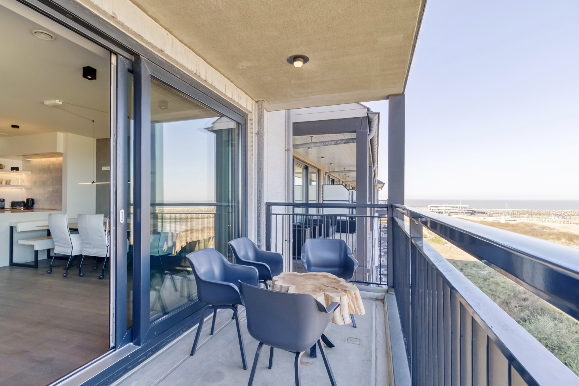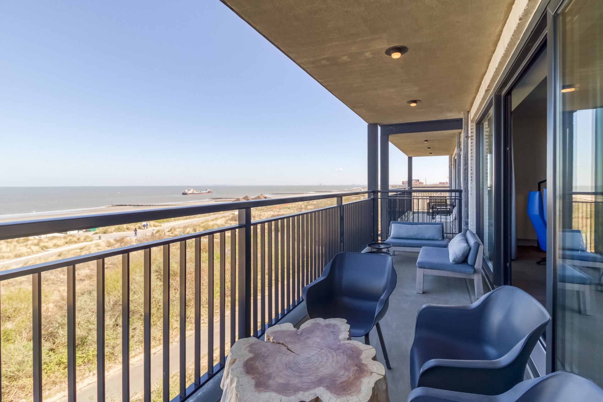 Het brede, royale balkon aan de zeezijde (ca. 13 m²) is via een schuifpui vanuit de woonkamer te bereiken. Dankzij de unieke ligging geniet u hier van een afwisselend panorama: natuur, strand en zee, gecombineerd met de levendige sfeer van de jachthaven en langsfietsende wandelaars. Het tweede balkon (ca. 10 m²) aan de Boulevardzijde is zuidgeoriënteerd, zodat u hier vrijwel de hele dag van de zon kunt genieten.