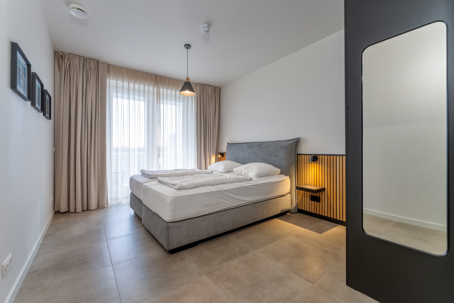 De slaapkamers zijn comfortabel ingericht en bieden voldoende kastruimte — perfect voor gasten of familie die willen meegenieten van het verblijf aan zee.