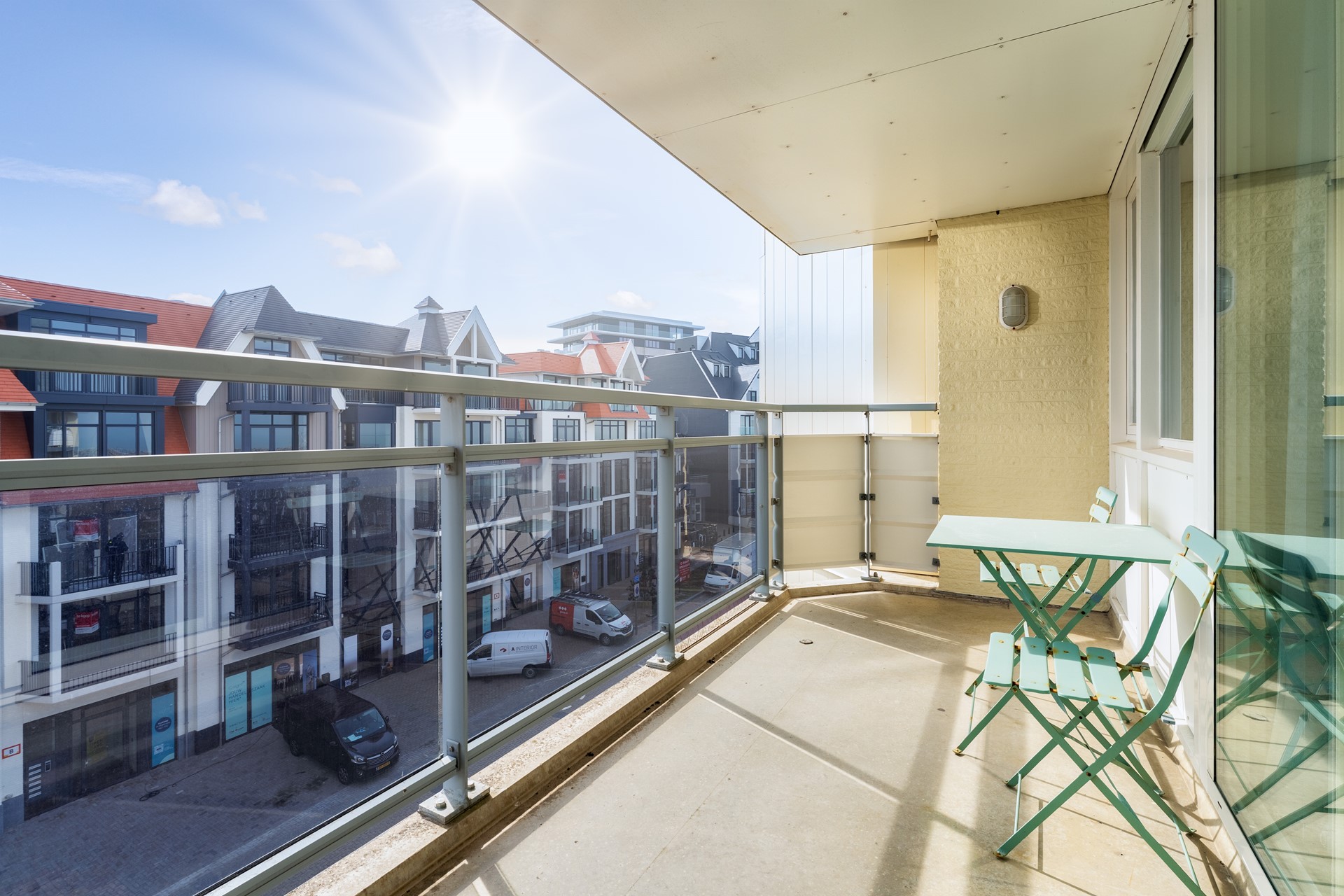 Het zonnige balkon is gelegen op het zuiden en vormt een heerlijke plek om in alle rust van de zon en het uitzicht te genieten. Dankzij de ligging op de vierde verdieping kijkt u prachtig uit over de Boulevard, het achterland en een deel van de omgeving. Een ideale plek voor een kop koffie in de ochtend, een goed glas wijn in de avond of simpelweg om heerlijk buiten te zitten.