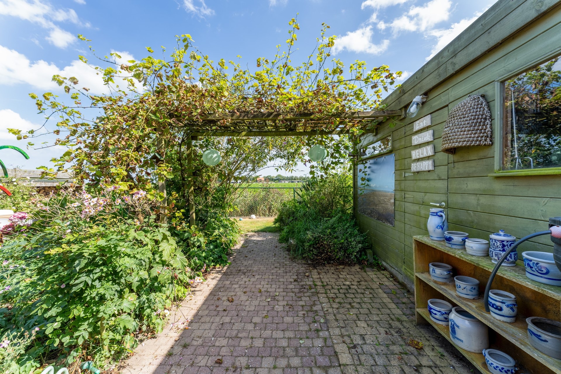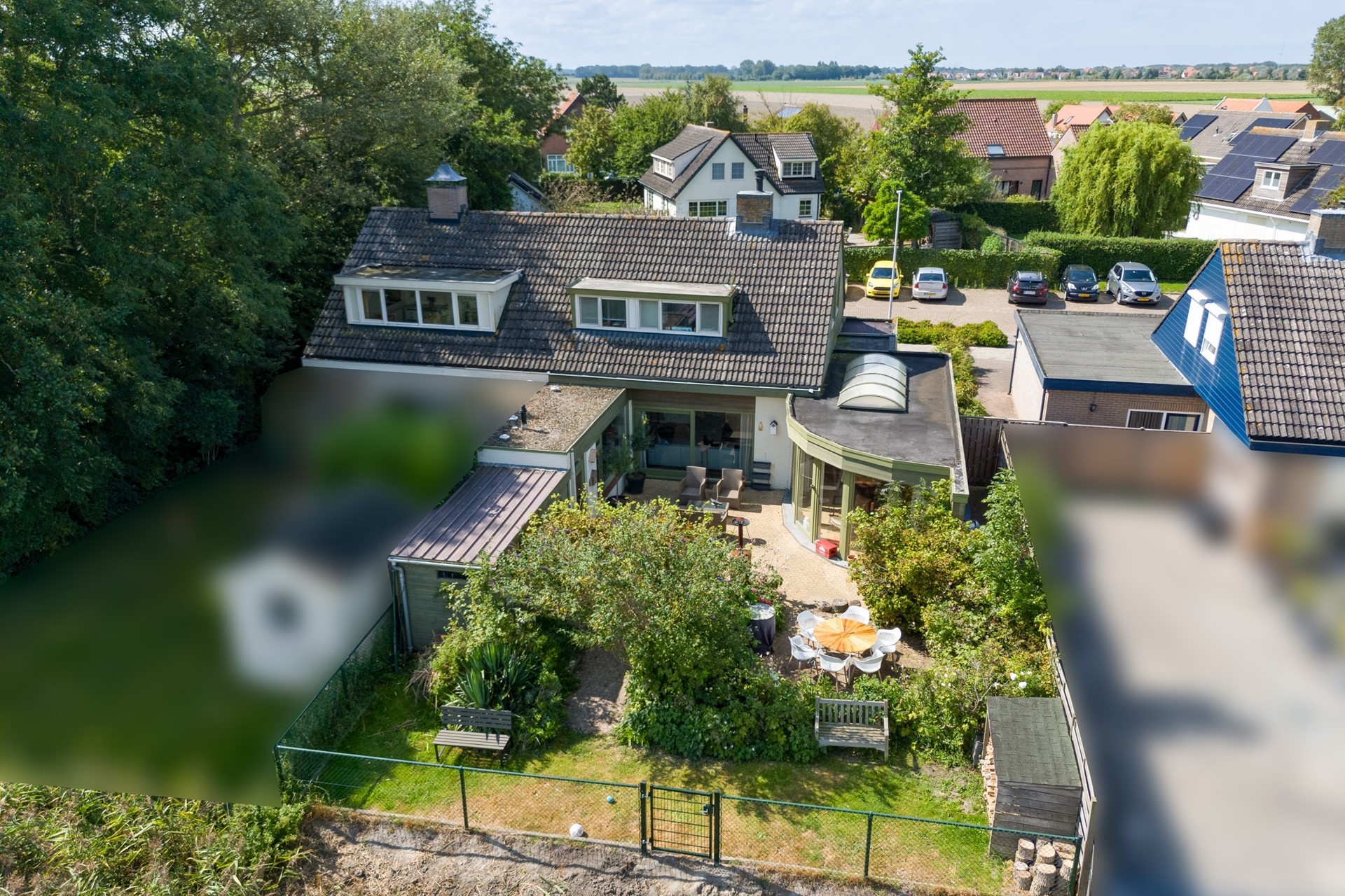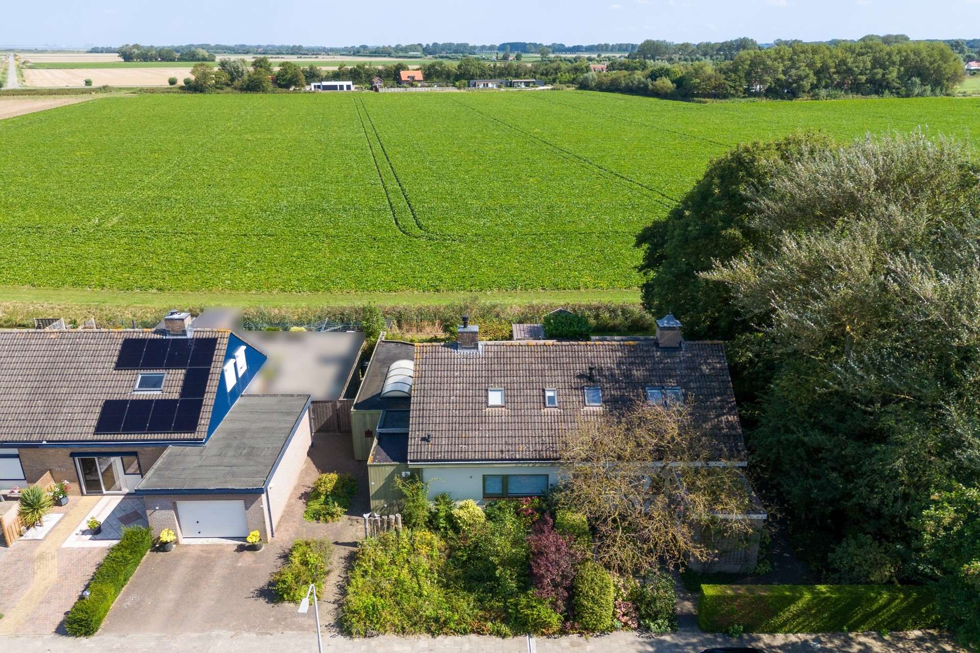 Aan zowel de voor- als achterzijde beschikt de woning over een tuin, samen goed voor een perceel van 383 m². De achtertuin is oostelijk georiënteerd en biedt een schitterend uitzicht over de uitgestrekte landerijen – een heerlijke plek om in alle rust te genieten. Aan de voorzijde is er bovendien ruimte om een oprit of carport te realiseren.