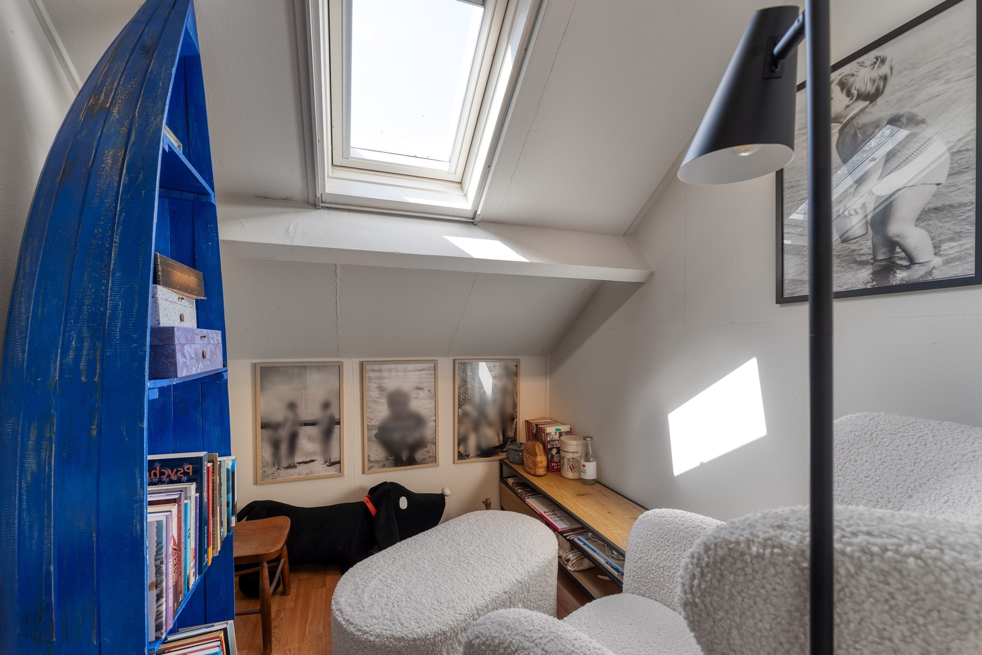 Vanuit de woonkamer leidt de trapopgang naar de eerste verdieping. Ook hier ervaar je volop ruimte. Via de overloop zijn een praktische bergruimte, twee royale slaapkamers en een tweede badkamer bereikbaar. Deze badkamer is uitgerust met een inloopdouche, wastafel en toilet. Dankzij de grote dakramen en de dakkapel geniet je in alle vertrekken van een zee aan natuurlijk licht.