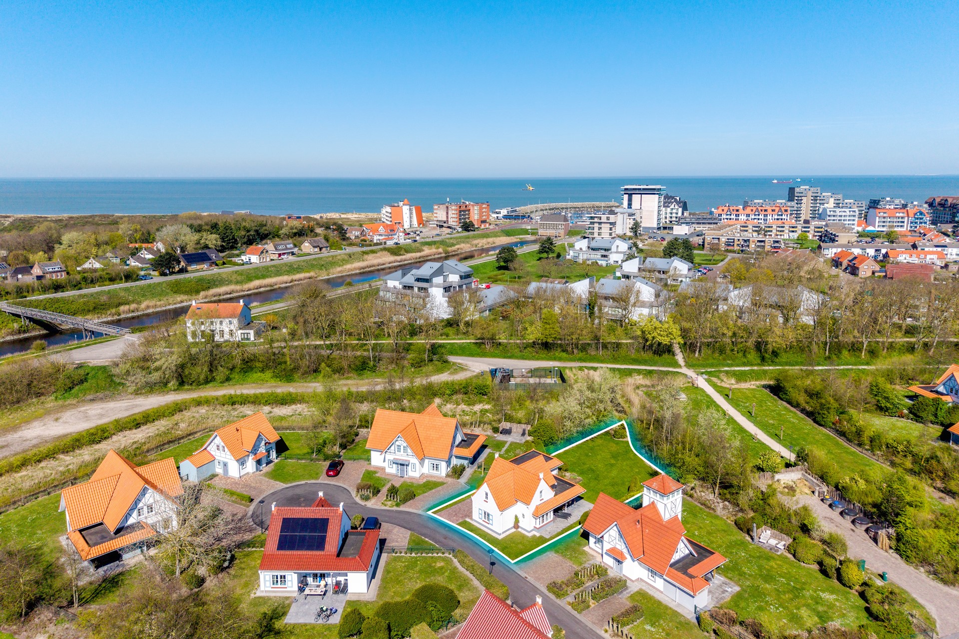 De woning is gelegen op Noordzee Résidence Cadzand-Bad, een ruim opgezette en groene villawijk met karakteristieke architectuur, brede lanen en veel privacy. Het park staat bekend om de rustige uitstraling en de aantrekkelijke ligging tussen strand, natuur en voorzieningen. Vanuit de woning wandelt of fietst u in korte tijd naar het Noordzeestrand, de jachthaven, duinen en diverse restaurants.