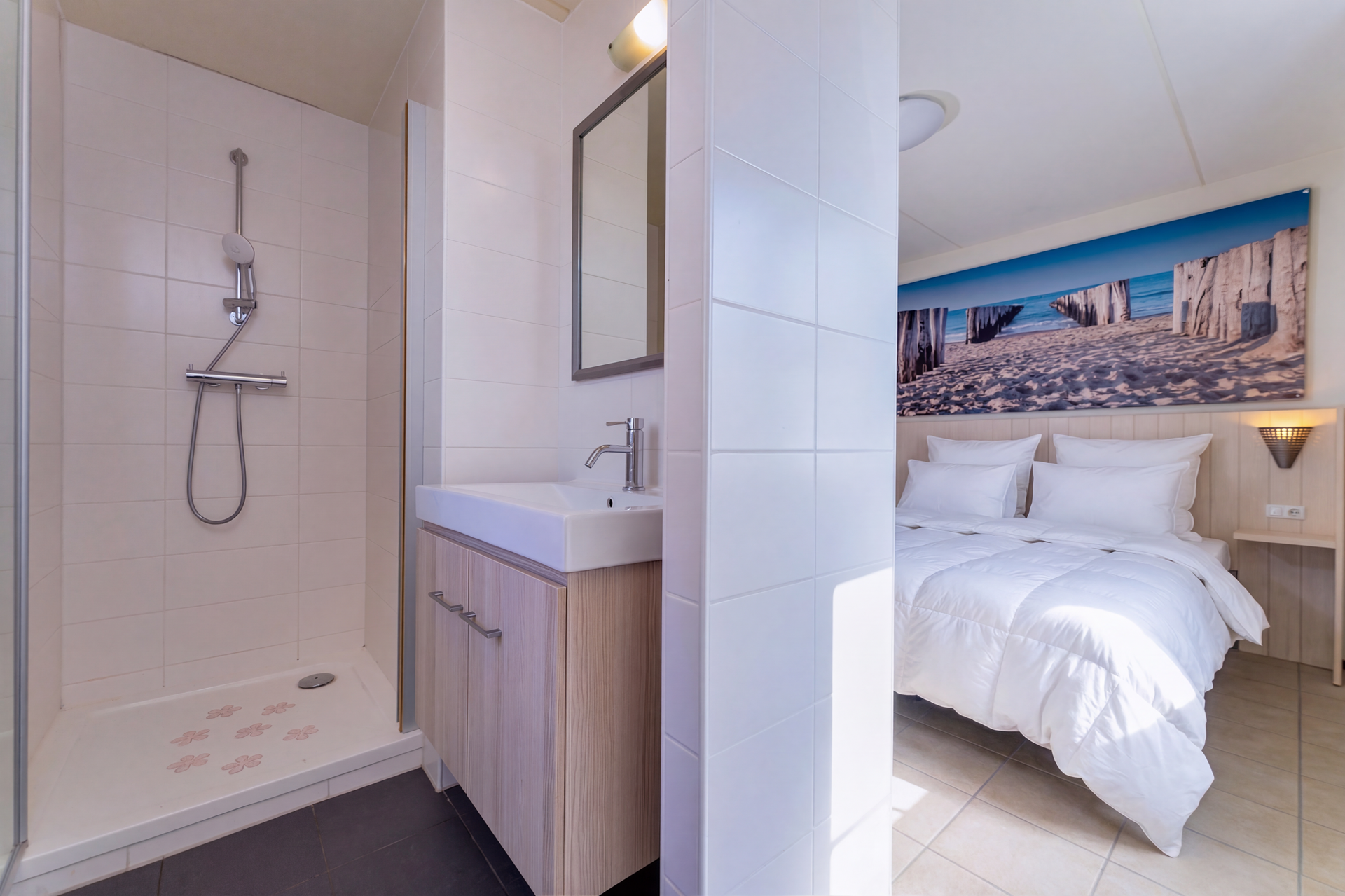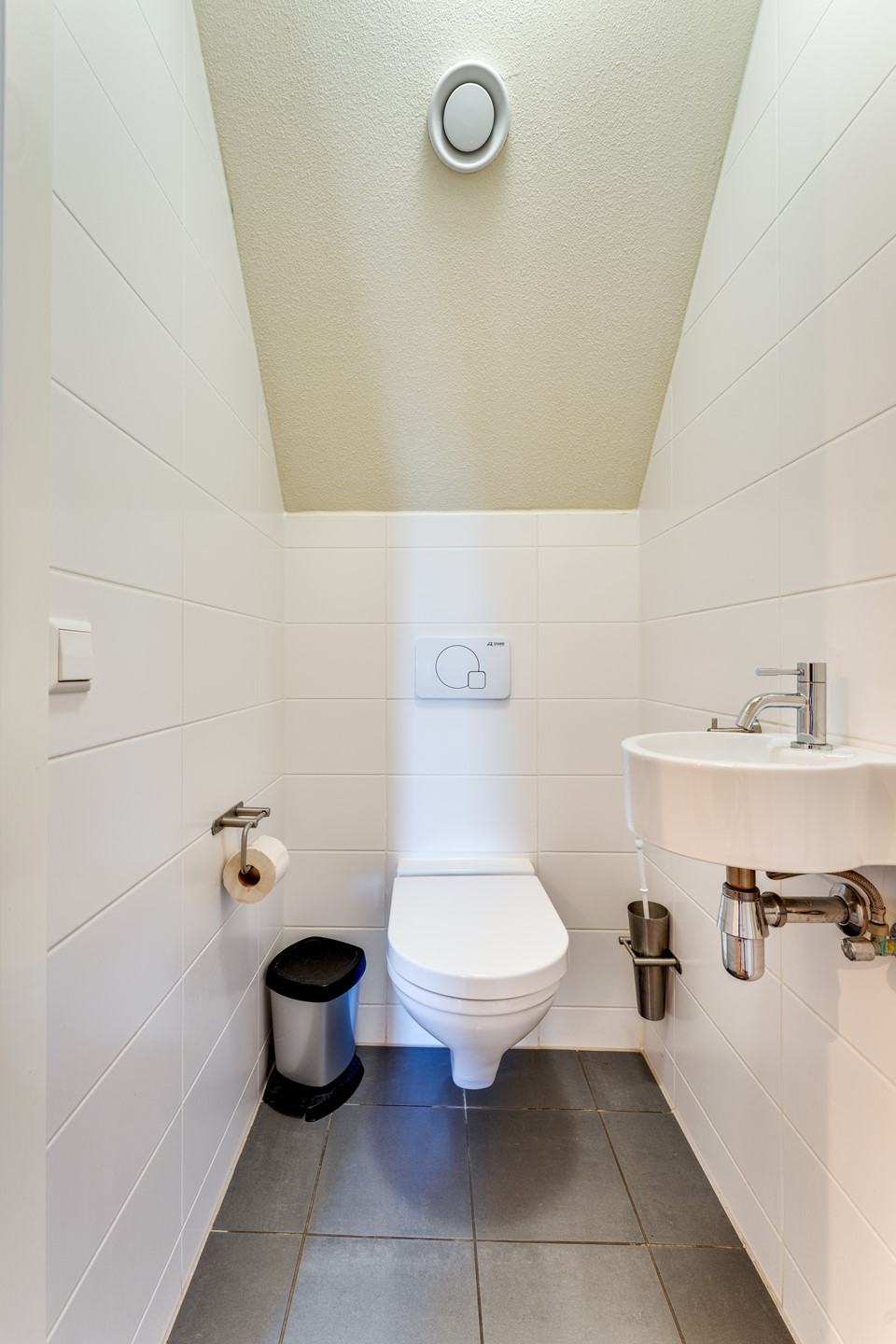 De tweede badkamer is voorzien van een douche en wastafelmeubel. Daarnaast is er op de verdieping een separaat toilet aanwezig, wat extra comfort biedt bij gebruik door meerdere personen. De sauna maakt deze verdieping compleet en zorgt voor een extra luxe en ontspannen verblijf.