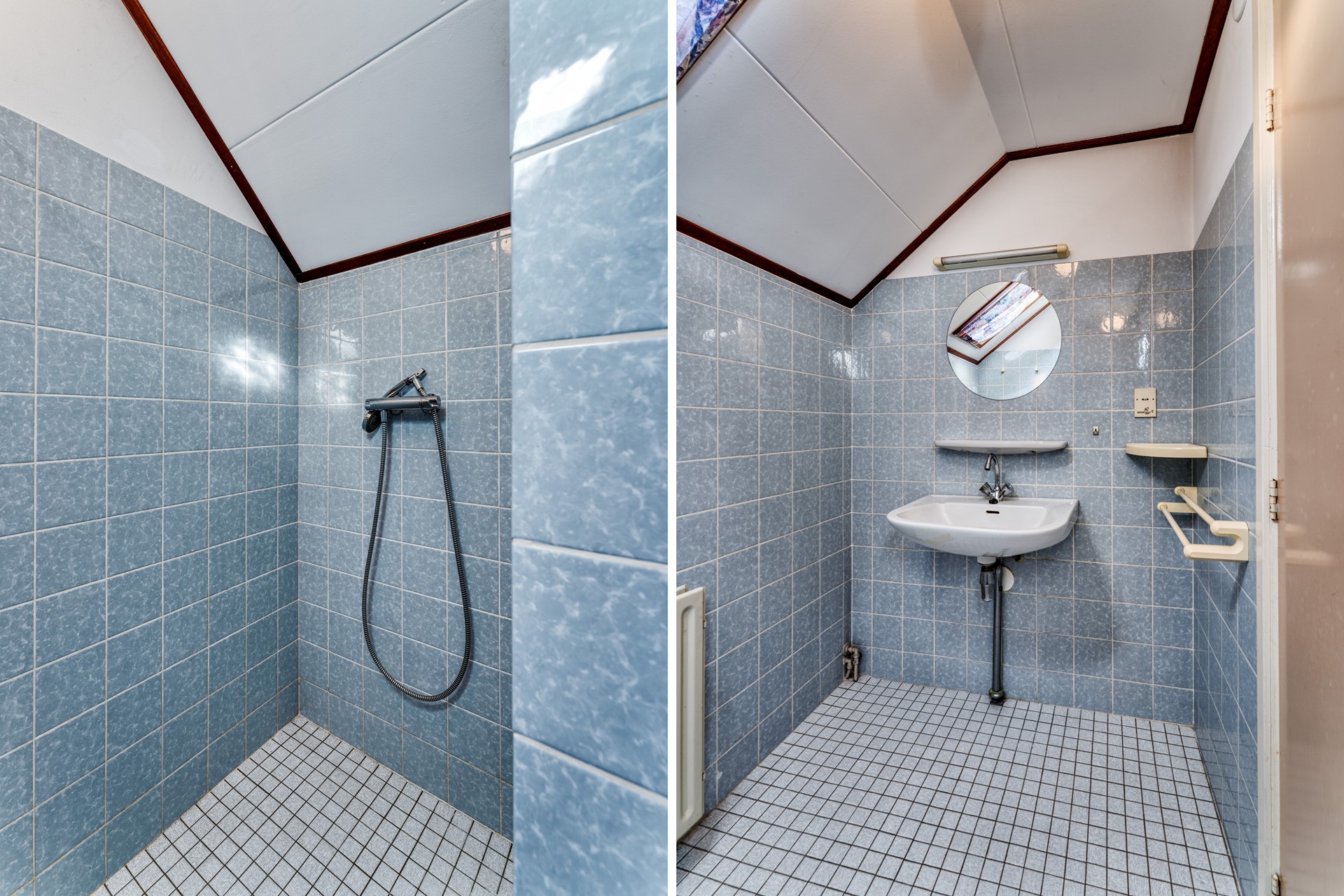 De slaapkamer op de begane grond beschikt over een badkamer en suite met douche en wastafel — ideaal voor gelijkvloers wonen of gasten.