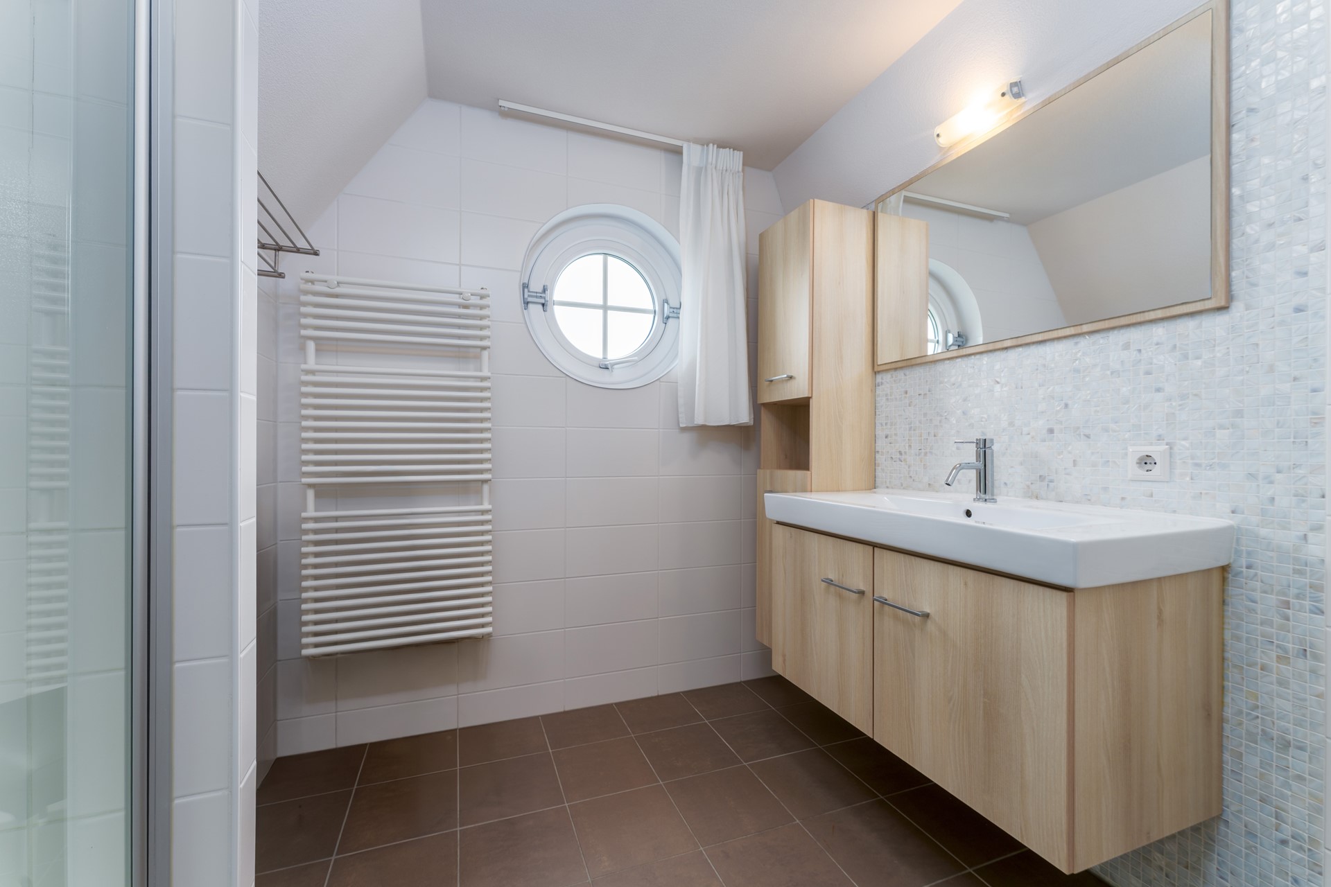 - Badkamer op de begane grond voorzien van een fraaie mozaïek achterwand