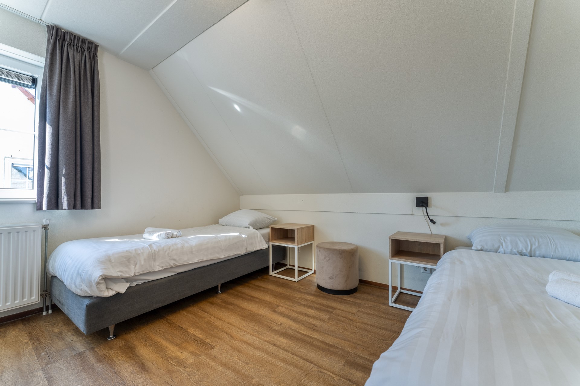 Beide slaapkamers zijn ruim opgezet en bieden voldoende plaats voor een tweepersoonsbed en kastruimte. De indeling is efficiënt en prettig in gebruik, zowel voor eigen verblijf als voor verhuur.