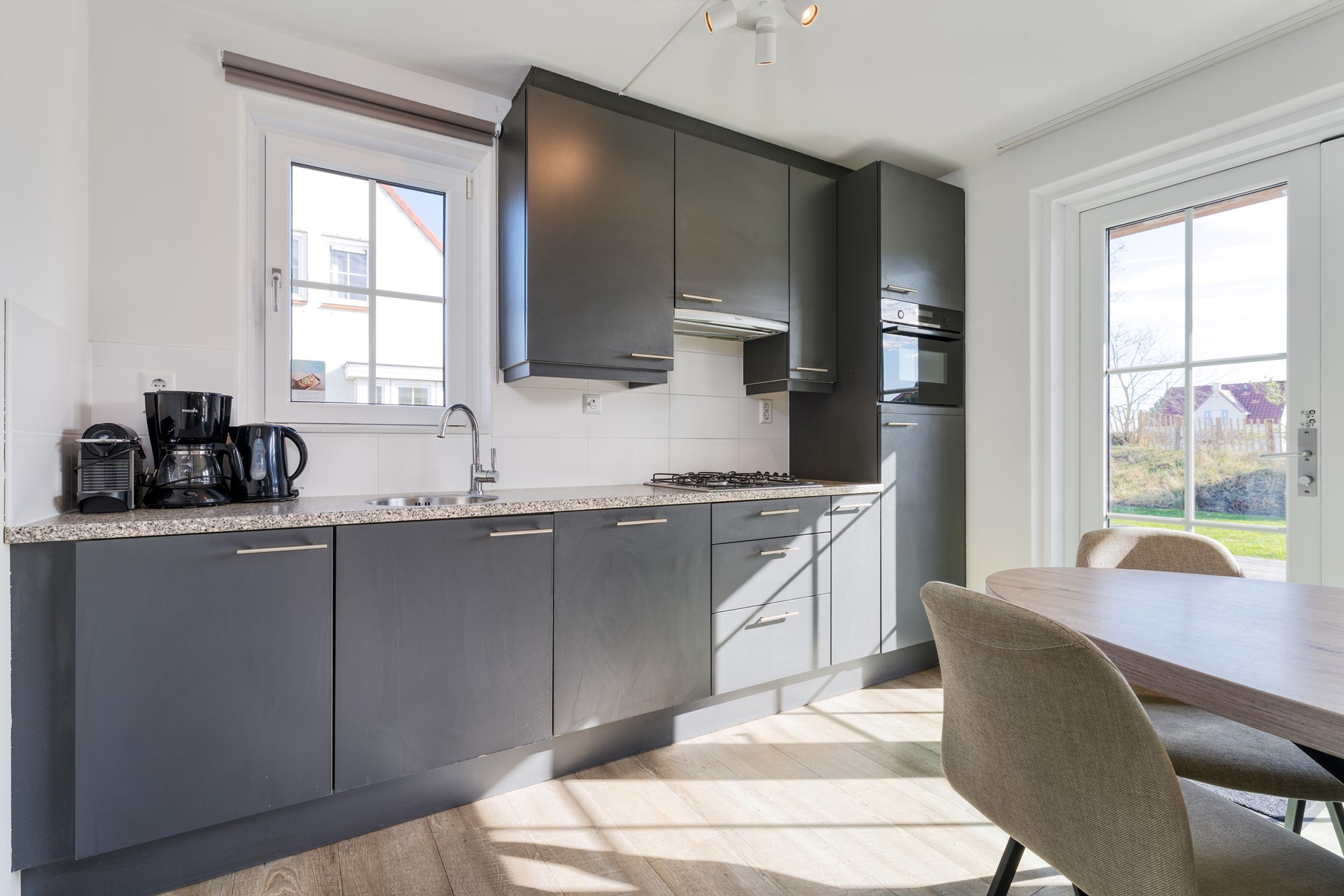 - Moderne, neutrale keuken: Gedeeltelijk vernieuwde keukenapparatuur.