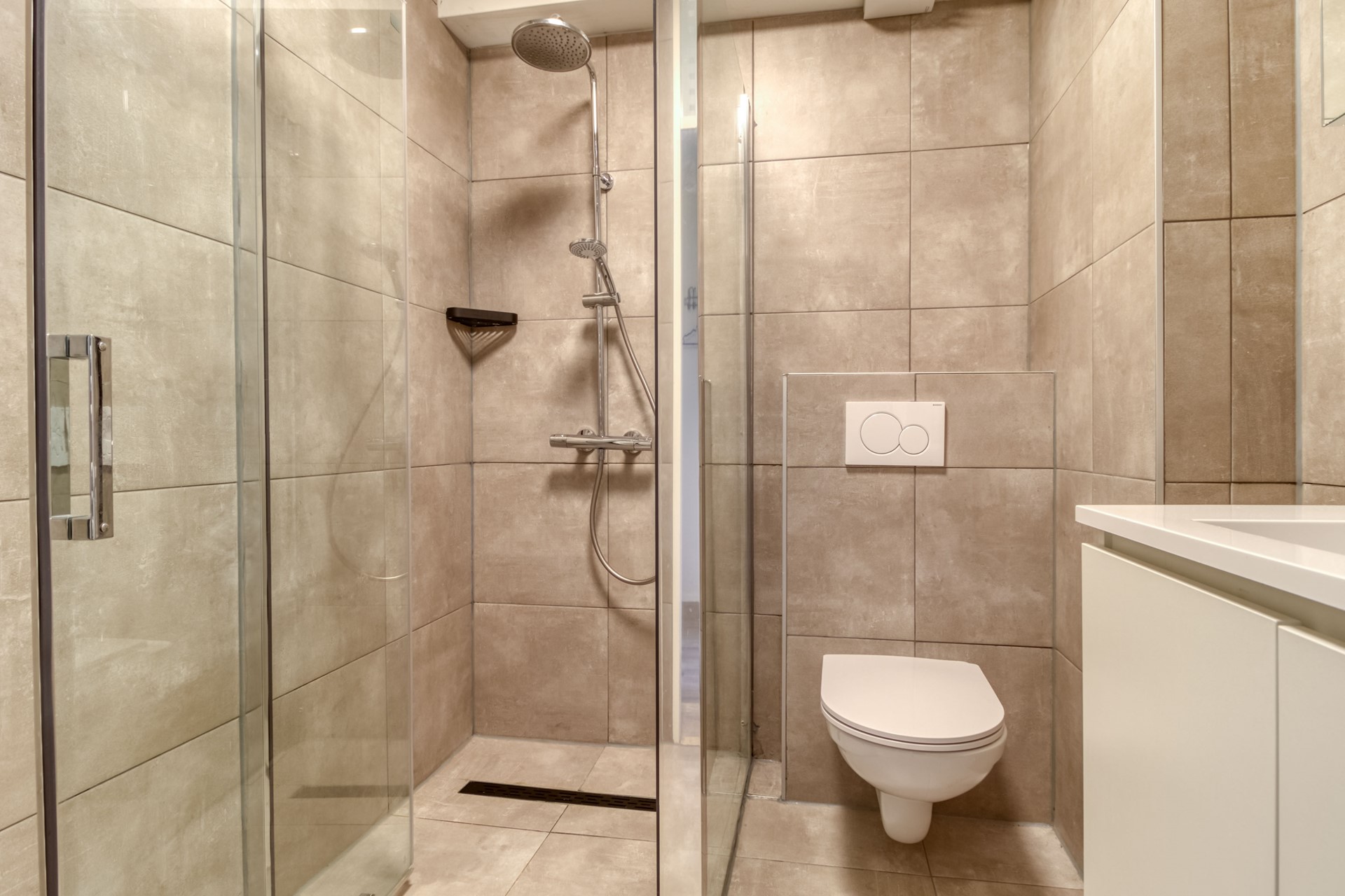 | Badkamervoorzieningen Badkamer 1 | Douche Toilet Wastafel |