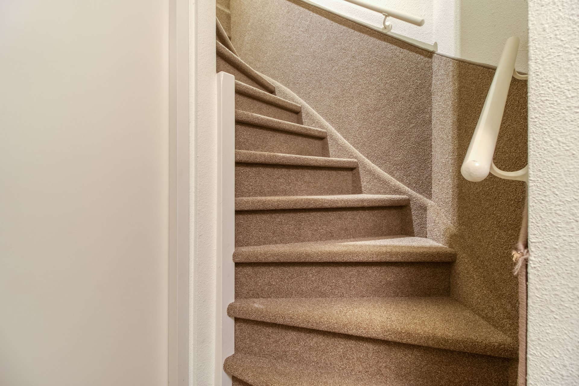 Via de trap kom je in de hal van het appartement. Vanuit hier bereik je alle vertrekken en heb je toegang tot de vaste trap naar de tweede verdieping.