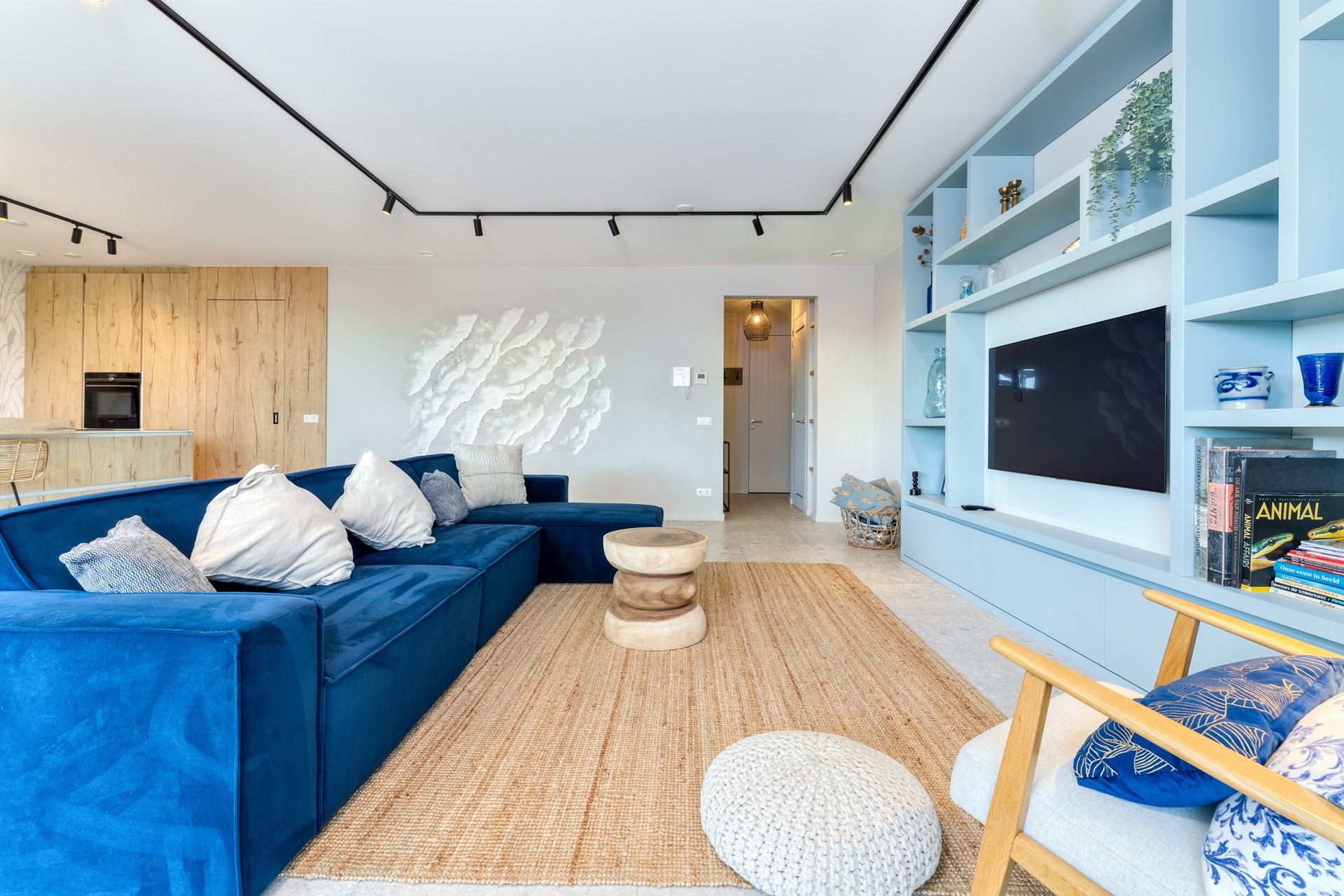 Bij binnenkomst in dit stijlvolle appartement word je direct verwelkomd in een ruime, uitnodigende hal die toegang biedt tot de meterkast, een modern gastentoilet en de lichte, elegant ingerichte woonkamer. De woonkamer straalt rust en klasse uit – elk detail is zorgvuldig doordacht, van het sfeervolle lichtplan tot de naadloos in de keuken geïntegreerde schuifdeur die toegang geeft tot de overige vertrekken.