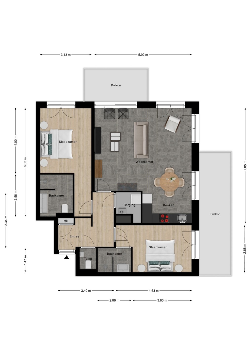 • Twee ruime slaapkamers en twee moderne badkamers