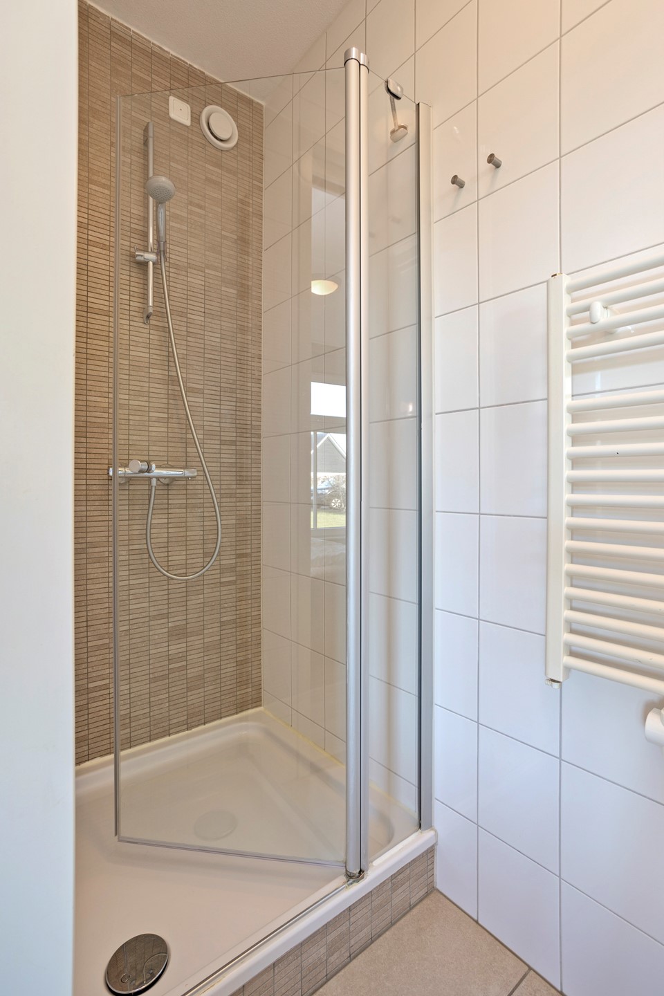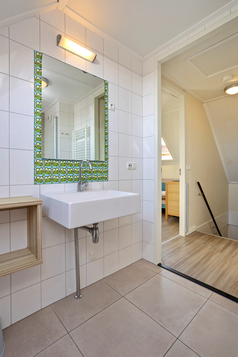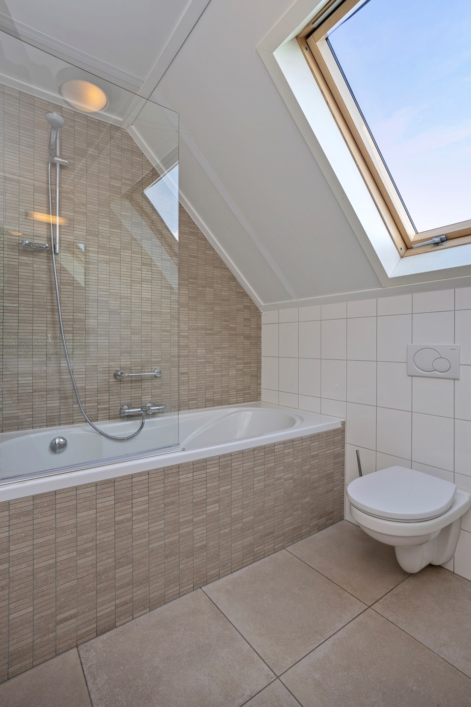 Middels de trapopgang bereik je de overloop die toegang geeft tot 2 ruime slaapkamers en een moderne badkamer. Het schuine dak geeft de kamers een knusse sfeer. De nette badkamer is voorzien van een ligbad, wastafel en toilet.