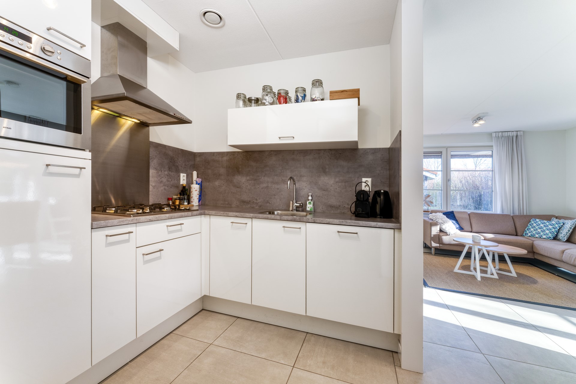 De woning is licht, ruim en prettig ingedeeld. Grote raampartijen zorgen voor een mooie natuurlijke lichtinval en versterken het open karakter van de leefruimte. Via de schuifpui stap je direct het overdekte terras op, waar binnen en buiten naadloos in elkaar overlopen. Een heerlijke plek om in alle seizoenen te genieten — van lange zomeravonden tot beschutte momenten in het voor- en najaar.