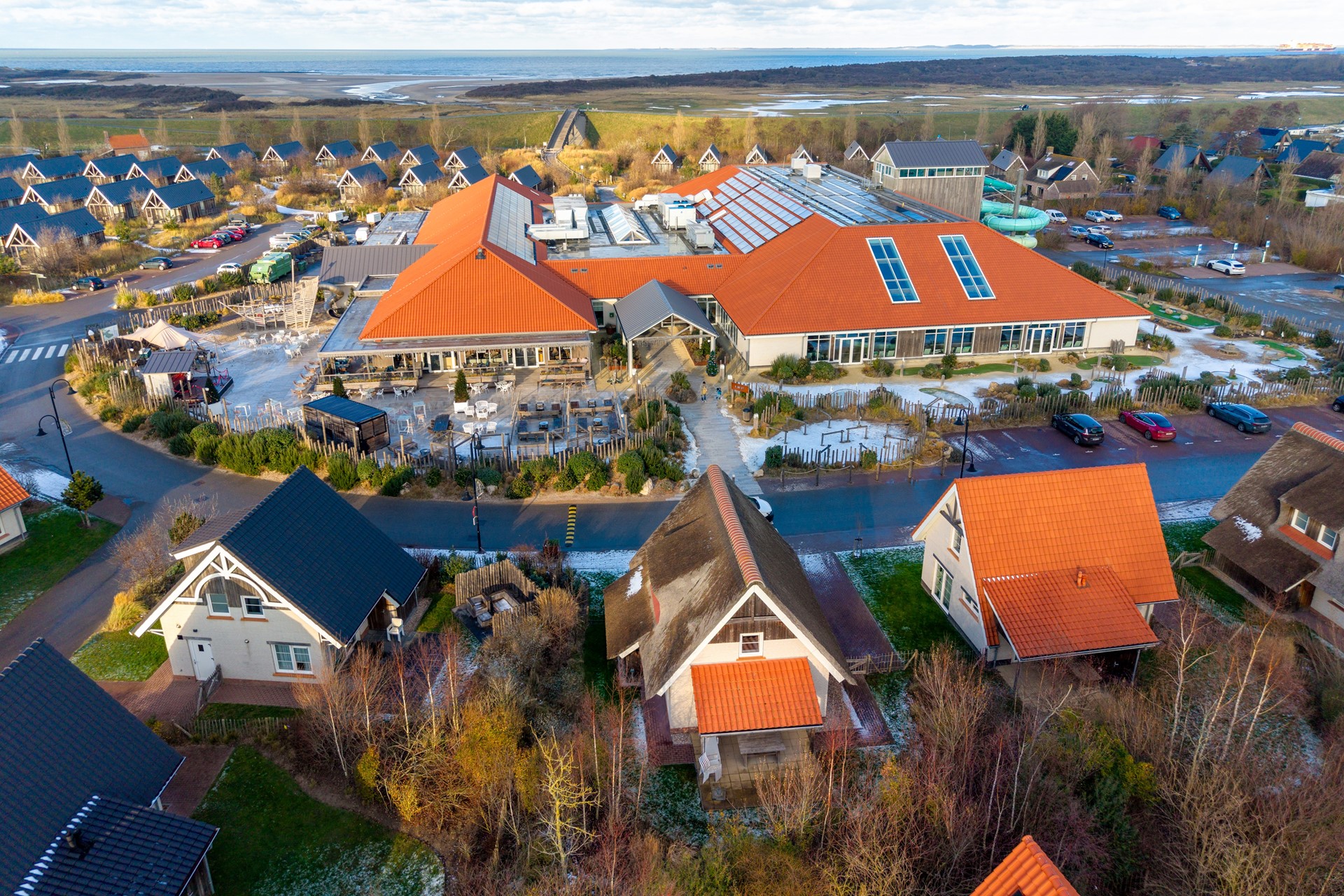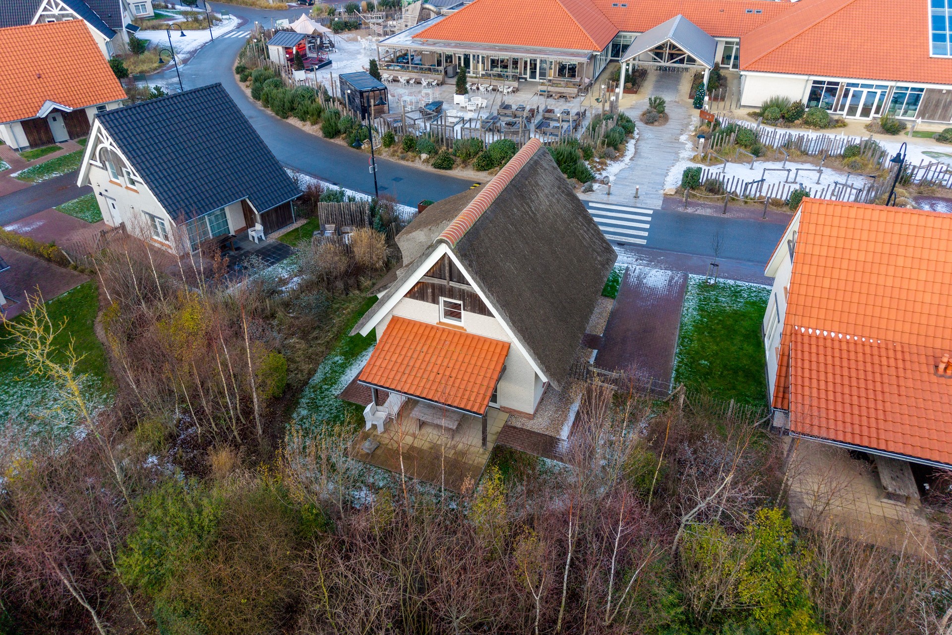 De ligging binnen het park is bijzonder prettig: op korte loopafstand van de centrumvoorzieningen en het zwembad (ca. 50 meter), maar zonder directe drukte of overlast. Parkeren kan comfortabel op eigen terrein, direct bij de woning.