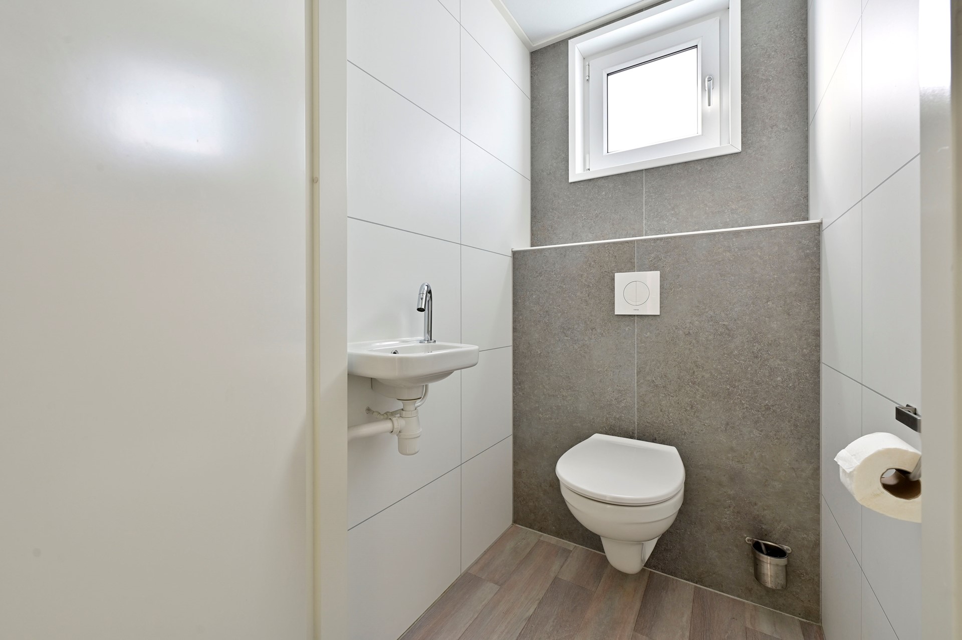 Via de hal bereik je drie comfortabele slaapkamers. Eén daarvan beschikt over een eigen en-suite badkamer met inloopdouche en wastafelmeubel. De tweede badkamer, eveneens met inloopdouche en wastafelmeubel, is vanuit de hal toegankelijk. Een vlizotrap biedt toegang tot een ruime, afgesloten zolder, ideaal voor het opbergen van persoonlijke spullen. Daarnaast vind je in de hal een apart toilet en een praktische bergkast met aansluiting voor de wasmachine.