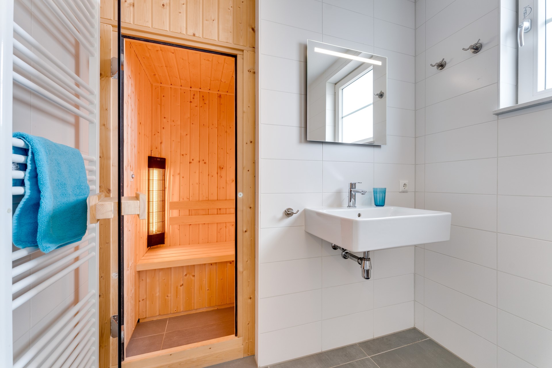 De tweede badkamer tilt het comfort naar een hoger niveau: een echte wellnessruimte, voorzien van een inloopdouche, een moderne wastafel én als absolute blikvanger – een luxe infraroodsauna. Ideaal om volledig tot rust te komen na een lange stranddag, een wandeling in de natuur of gewoon… omdat het kan.