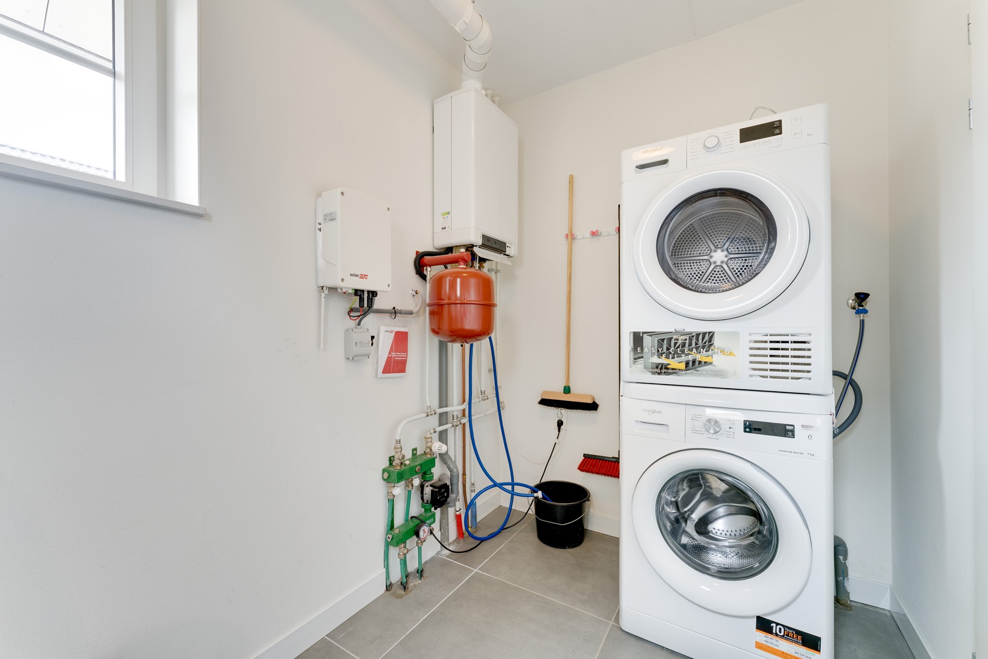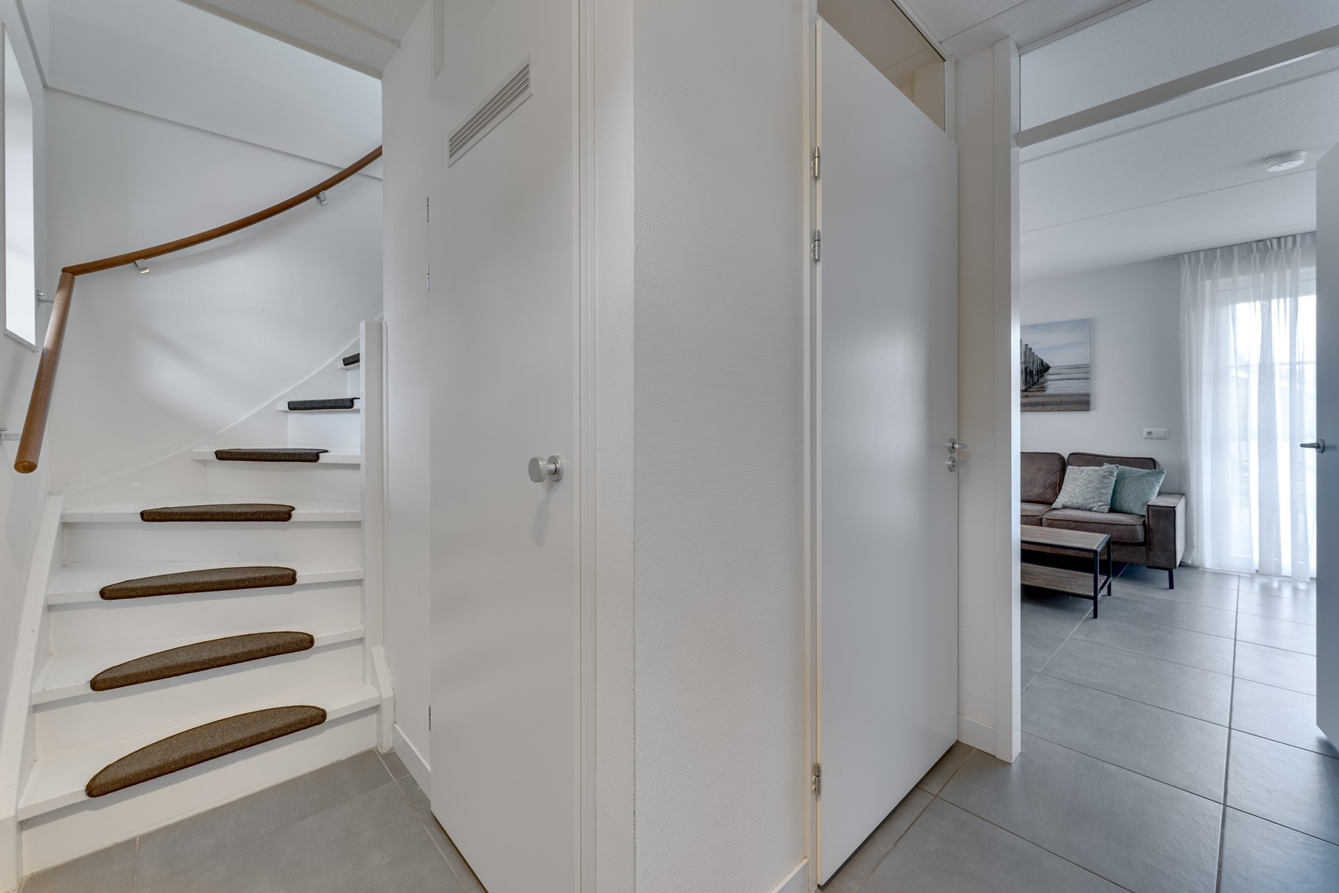 Op de begane grond zorgt comfortabele vloerverwarming ervoor dat je ook in de koudere maanden volop kunt genieten van je verblijf. Aansluitend aan de keuken bevindt zich een praktische bijkeuken met ruimte voor een wasmachine en droger – ideaal voor een langer verblijf of een weekend weg met het gezin.