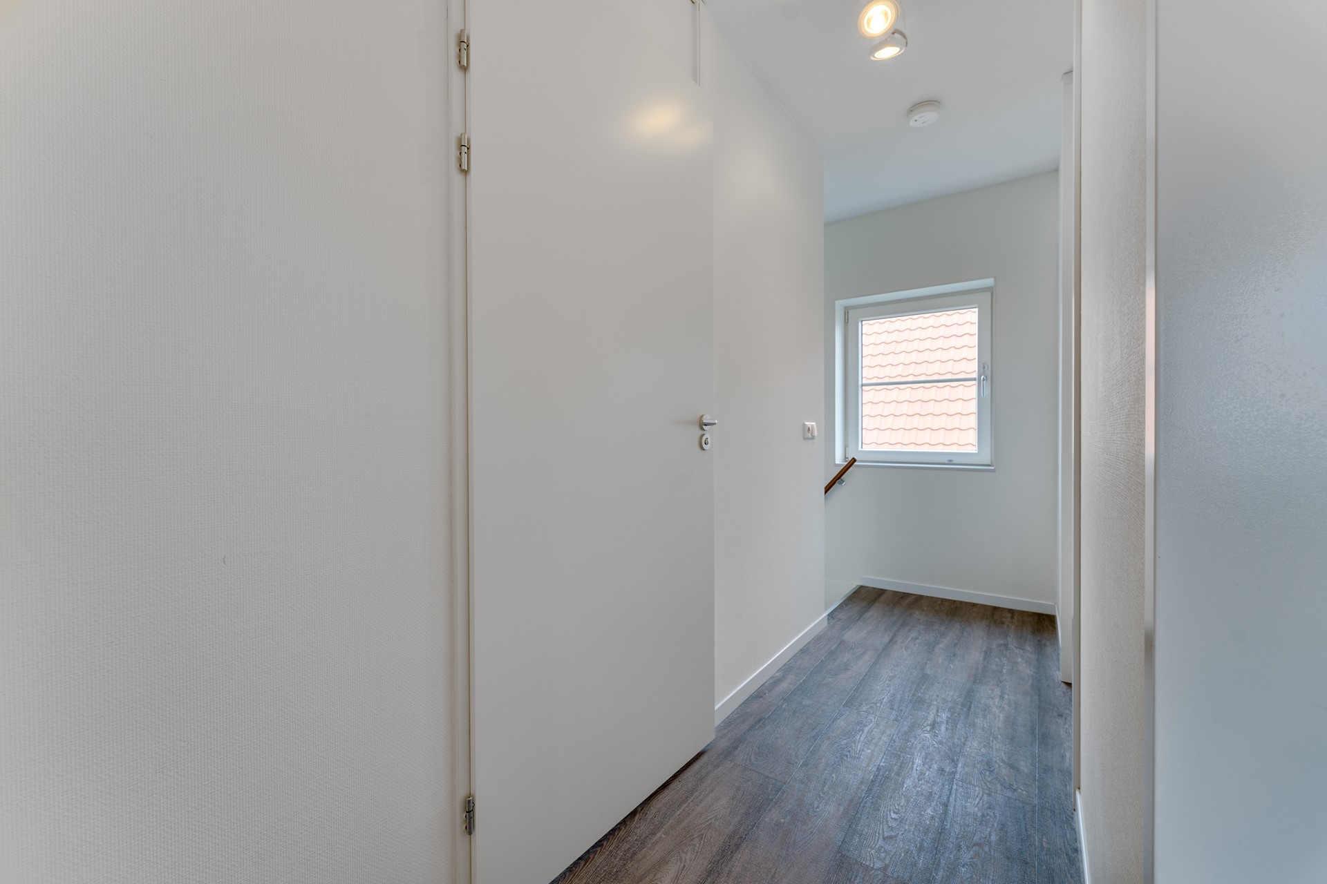 Via de trap kom je op de eerste verdieping, waar de overloop toegang biedt tot twee royale slaapkamers – ieder met een eigen karakter en volop ruimte voor rust en comfort.
